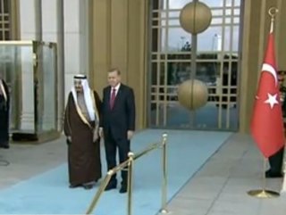 Erdoğan, saat 13.30’da Suudi arabistan Kralı Selman Bin Abdulaziz’i, Beştepe’deki Cumhurbaşkanlığı Külliyesi’nde resmi törenle karşıladı.