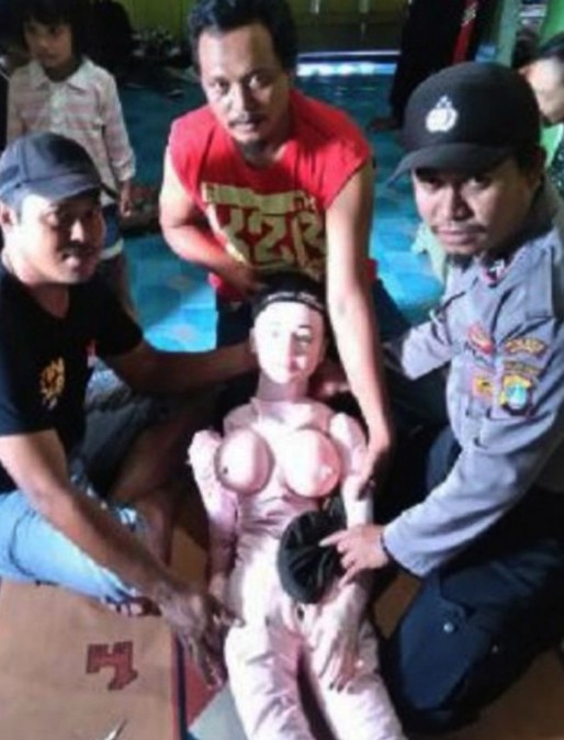 ‘Meleğe ’ saygılarını göstermek isteyen Endonezyalı köylüler, bebeği giydirdiler, her gün de kıyafetlerini değiştirdiler. Şişme kadının, ada yakınlarından geçen bir gemiden atıldığı sanılıyor.