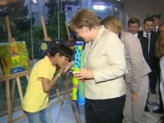 Suriyeli mülteci çocuk Merkel’in elini öptü